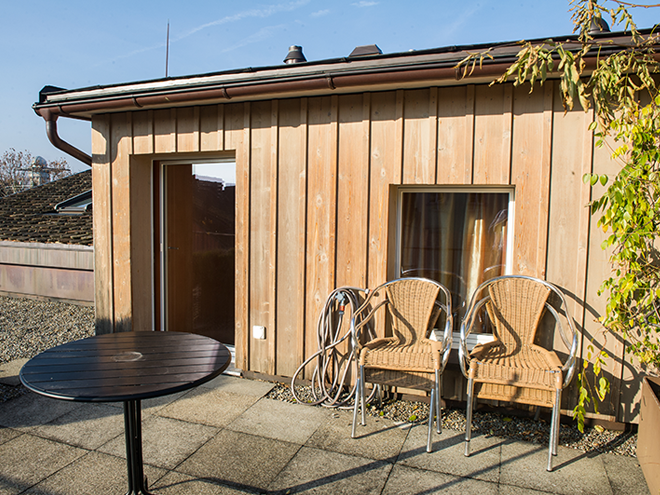 - 35 m² DACHTERASSE - Gratis Internet / LAN + WLAN - TV und Klimagerät - Bettgrösse 140 x 200 cm